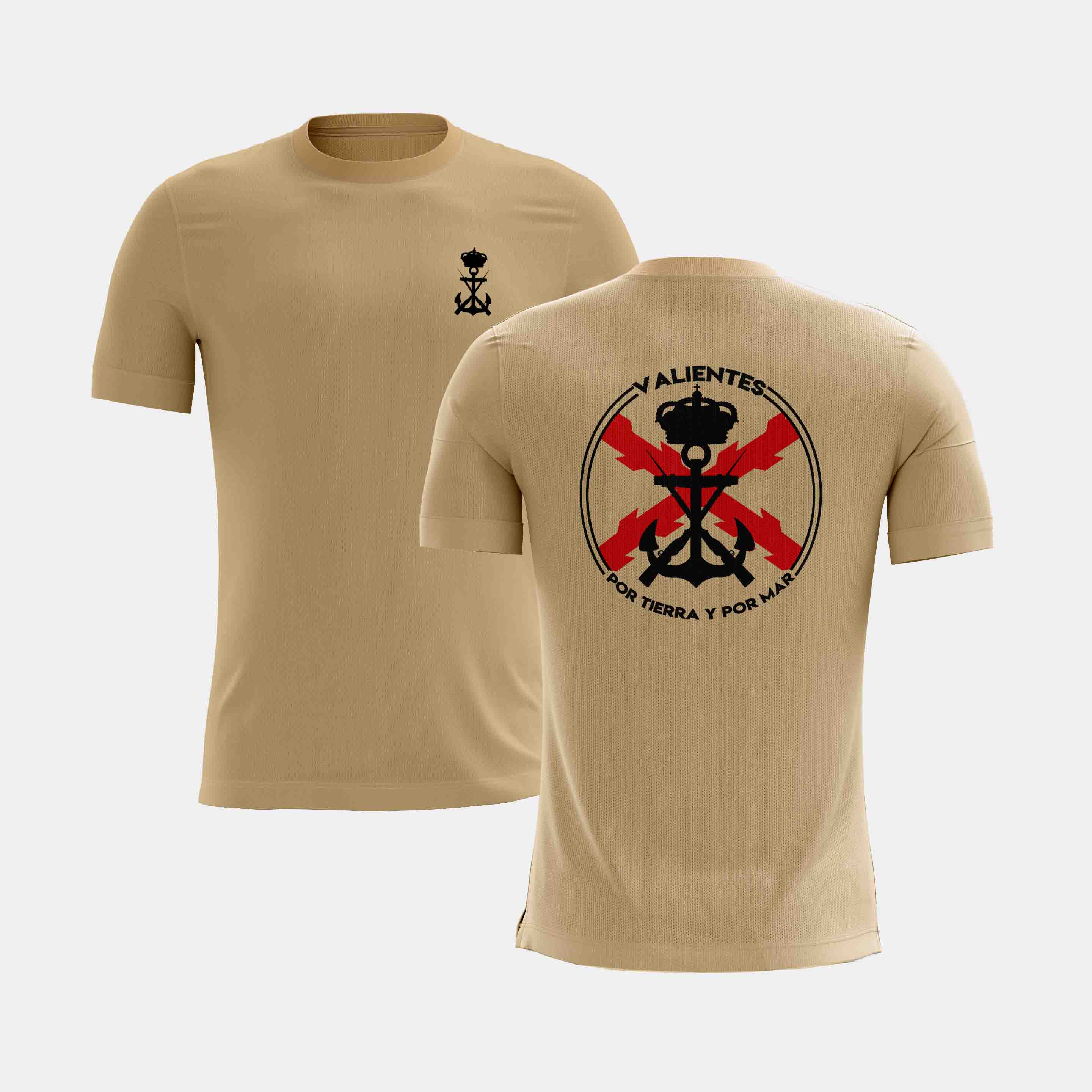 Camiseta de Infantería de Marina, con un diseño exclusivo SERMILITAR y su lema "Valientes por tierra y por mar".